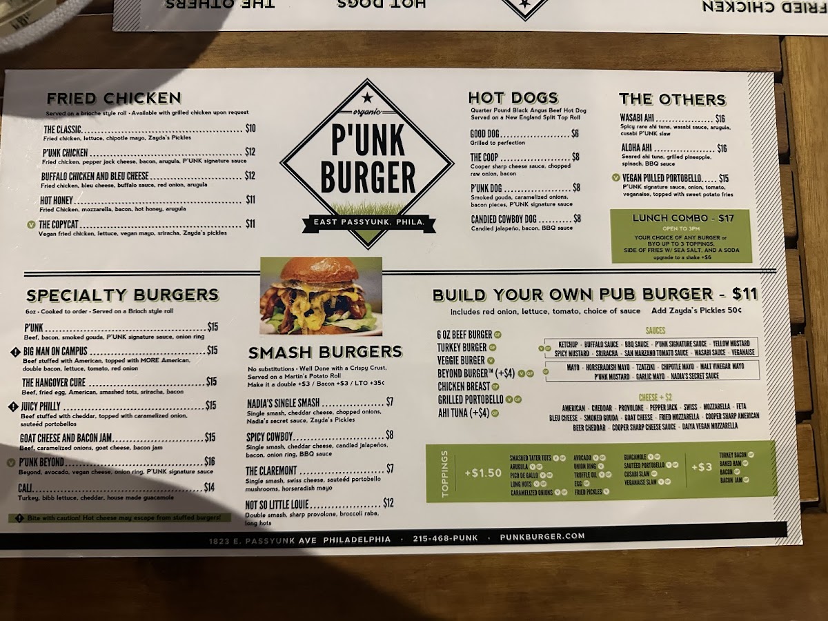 Welcome to P'unk Burger, a hidden gem nestled at 1823 E Passyunk Ave, Philadelphia. This vibrant burger joint brings a thrilling twist to the classic American burger experience. Renowned for their mouthwatering juicy burgers, like the Juicy Philly smothered in portobello mushrooms and cheddar cheese, P'unk Burger delivers both flavor and unforgettable texture.
